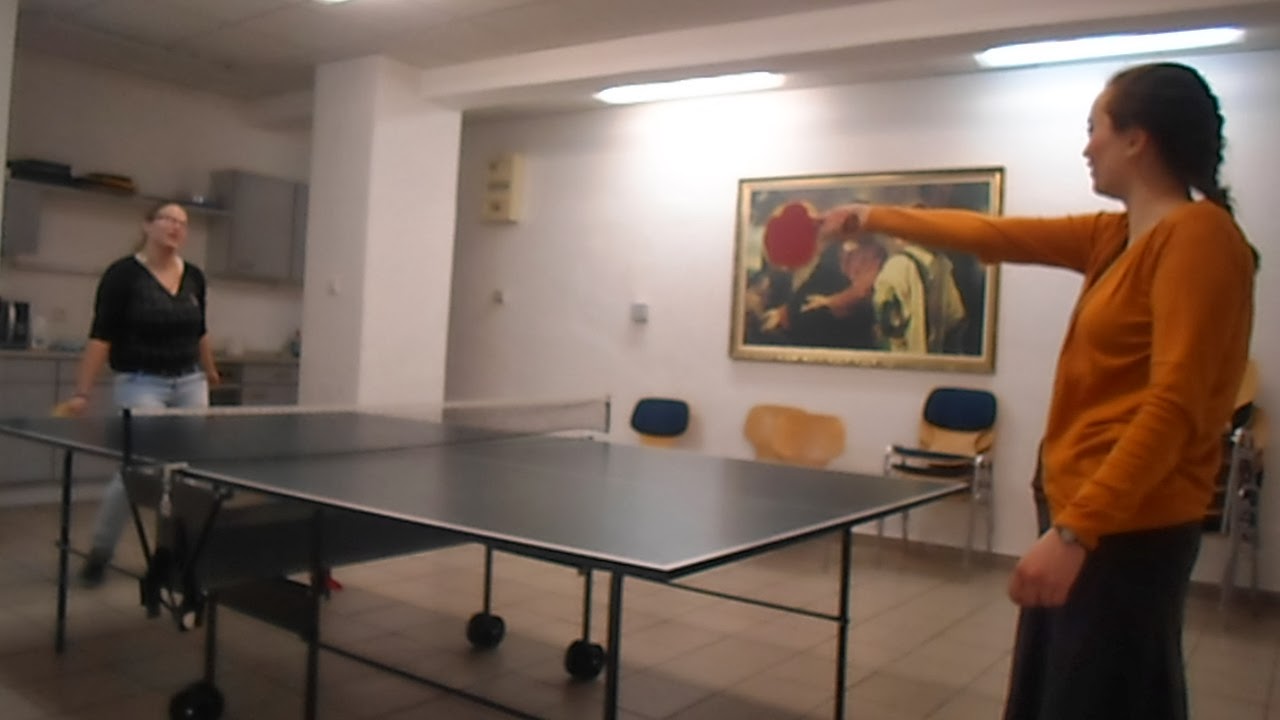 | me playing H in ping pong. It was a pretty intense game...hahah! She is so funny! She is just like my best friend! |